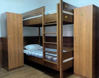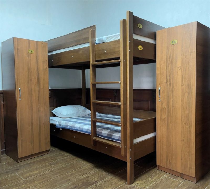 Номера оборудованы комфортными кроватями с новыми матрасами высокими подушками, белоснежным бельем и индивидуальными запирающимися шкафчиками. В хостеле просторная общая кухня, с большим холодильником и микроволновой печкой, есть вся необходимая посуда и приборы. На кухне нет плиты, есть Wi-Fi и плоский широкоэкранный телевизор.